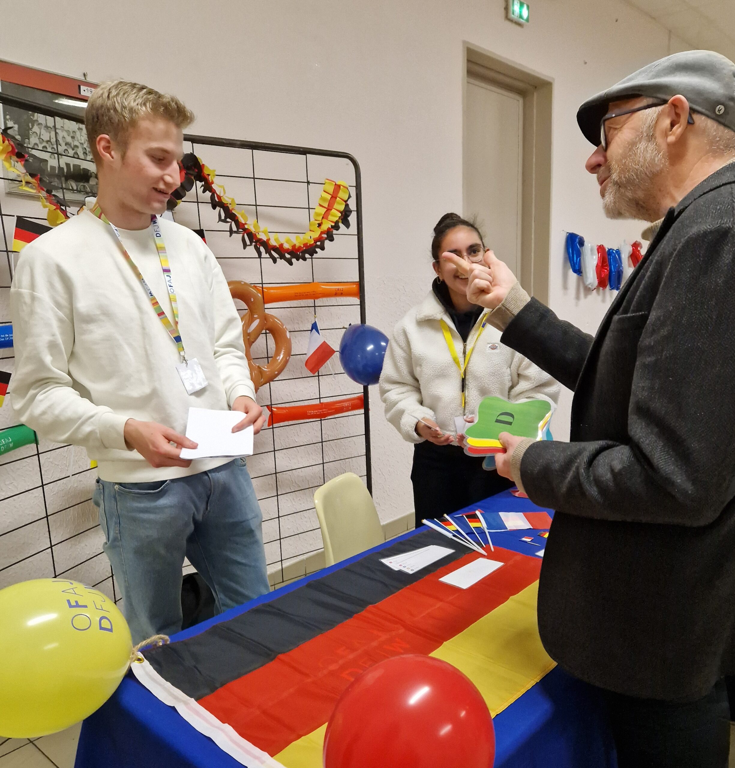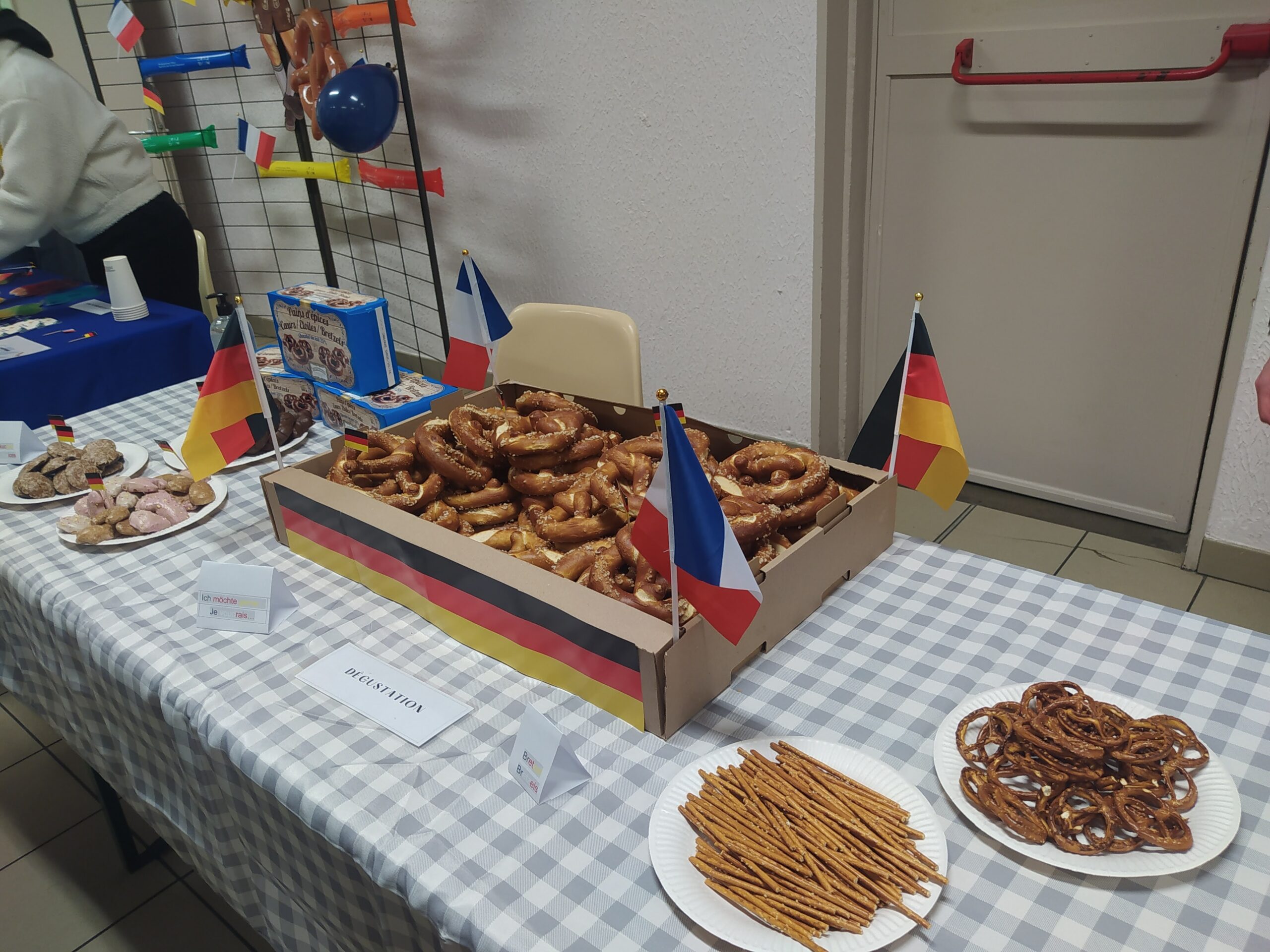 - En première partie, sur différents stands, les participants pouvaient découvrir l’histoire, les traditions et la culture allemande à travers des ateliers et des jeux, des mets locaux (saucisses chaudes préparées avec soin, pains d’épices et bretzels, et même de la bière allemande). Le stand de la Maison de l’Europe des Landes offrait une multitude d’informations à glaner sur leurs actions et programmes avec un foisonnement de panneaux, de brochures, d’outils pédagogiques et de renseignements pratiques.