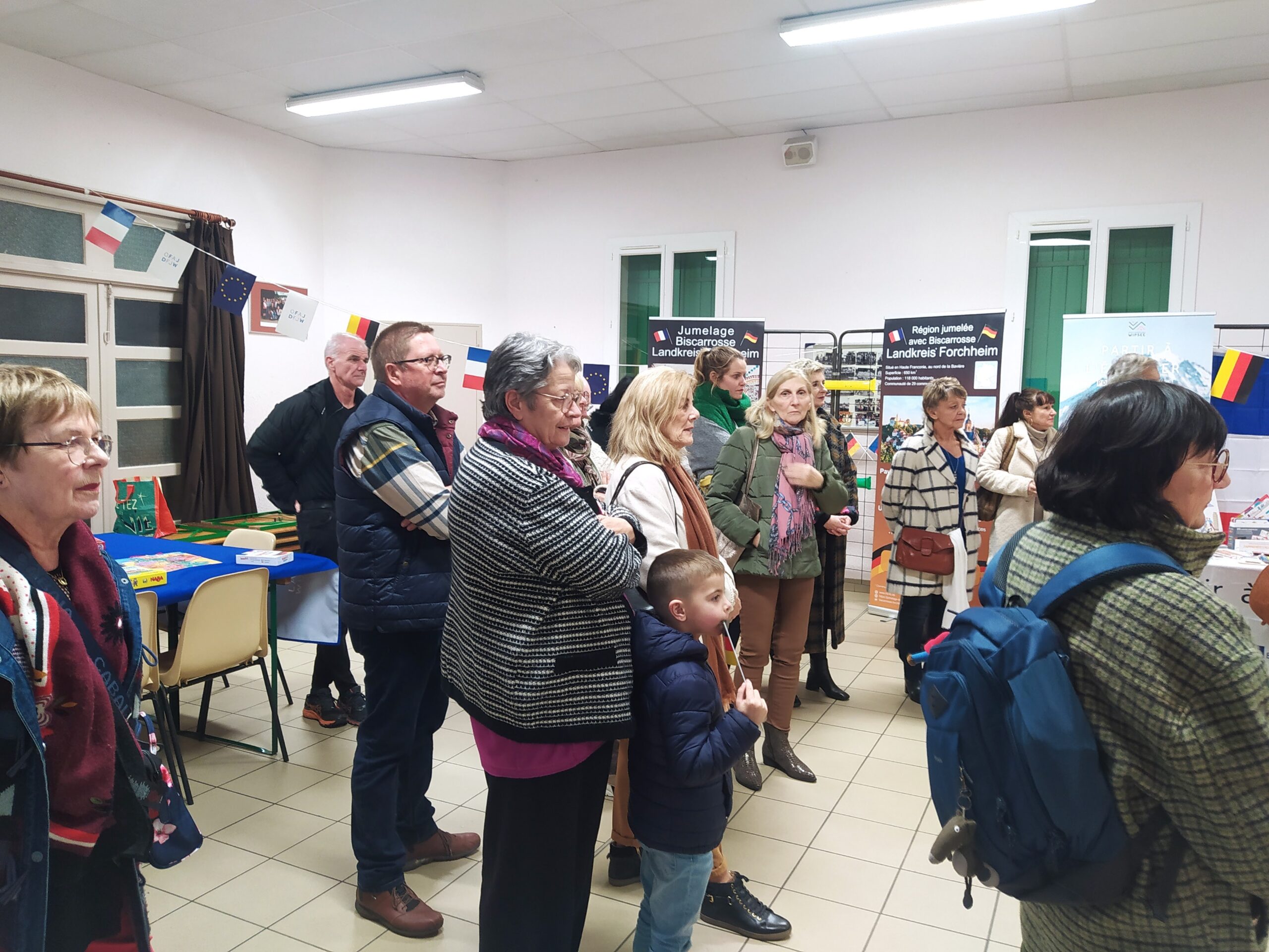 La Maison de l’Europe des Landes WIPSEE, est venue en force à Biscarrosse – au Foyer des Cols Verts – pour animer une soirée franco-allemande en partenariat avec le Comité de Jumelage Biscarrosse – Landkreis Forchheim. Cet institut est en charge dans les Landes de la mobilité des jeunes en Europe. Bien des programmes et stages linguistiques, professionnels ou de loisirs sont en cours pour inviter les jeunes à découvrir d’autres horizons en toute sécurité, avec l’OFAJ (Office franco-allemand pour la Jeunesse), ERASMUS ou d’autres organismes agrées …