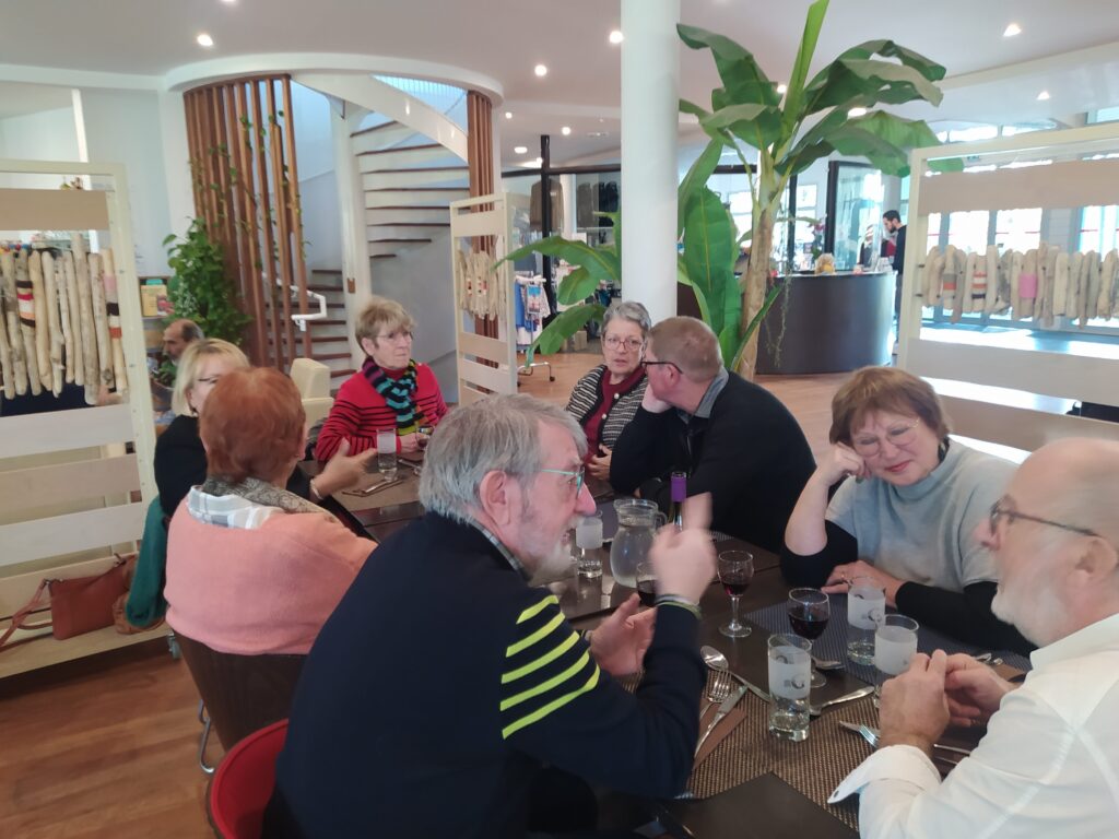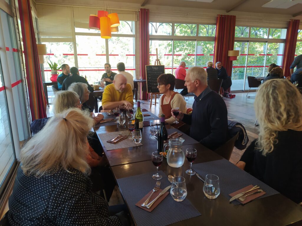 28 adhérents et sympathisants se retrouvaient ce samedi 25 Novembre 2023 à l’appel du Comité de Jumelage, pour un déjeuner au restaurant du golf « Le Parcours Gourmand », une occasion de goûter le Beaujolais Nouveau 2023.Cadre idyllique et menu de qualité, qu’imaginer de mieux pour passer quelques heures des plus agréables et permettre des échanges animés et amicaux.Ce fut aussi l’occasion d’une présentation des activités et projets du Jumelage par notre présidente, devant la cheminée, dans une ambiance chaleureuse.Une expérience que nous ne manquerons pas de renouveler